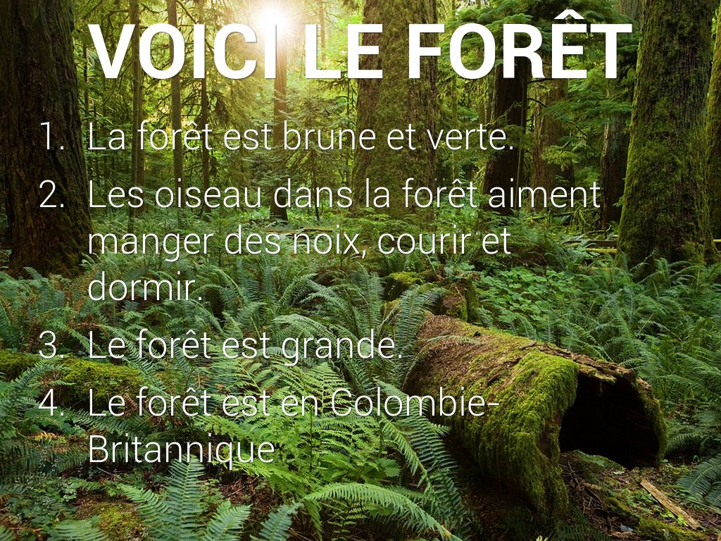 Les oiseau dans la forêt aiment manger des noix, courir et dormir.