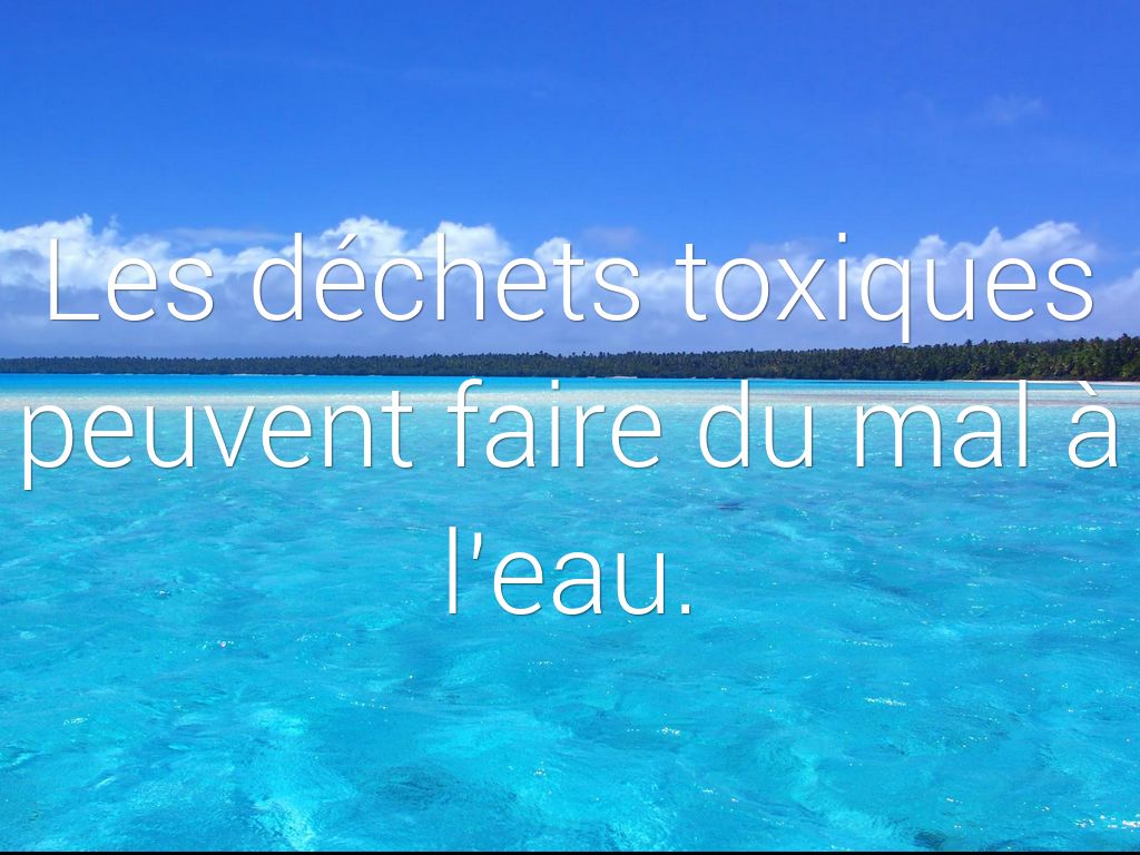 Les déchets toxiques peuvent faire du mal à l'eau.
