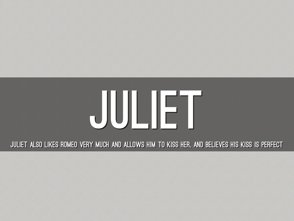 JULIET ALSO LIKES ROMEO VERY MUCH AND ALLOWS HIM TO KISS HER, AND BELIEVES HIS KISS IS PERFECT