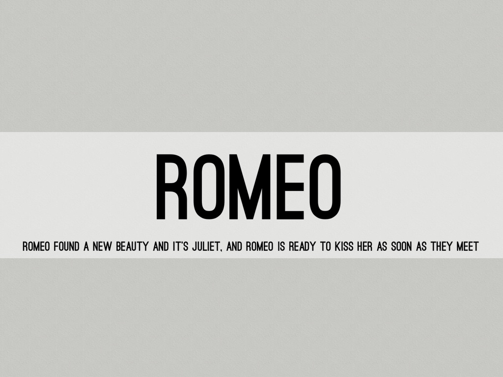 Romeo found a new beauty and it's juliet, and romeo is ready to kiss her as soon as they meet