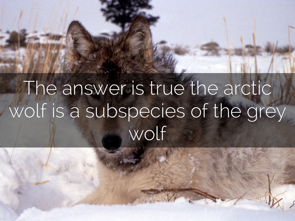 The answer is true the arctic wolf is a subspecies of the grey wolf