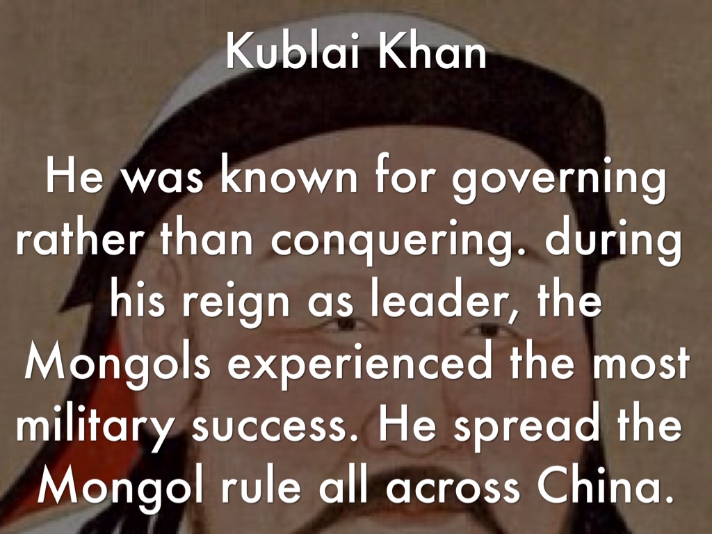 He was known for governing rather than conquering. during his reign as leader, the Mongols experienced the most military success. He spread the Mongol rule all across China.
