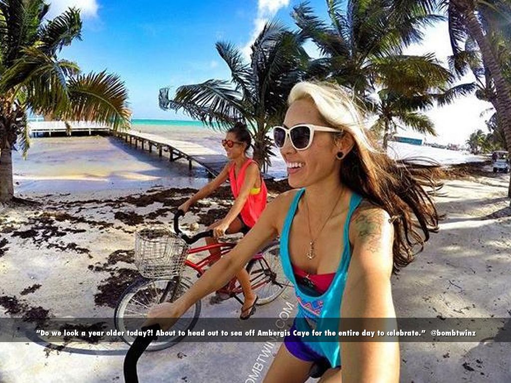“Do we look a year older today?! About to head out to sea off Ambergis Caye for the entire day to celebrate.” @bombtwinz