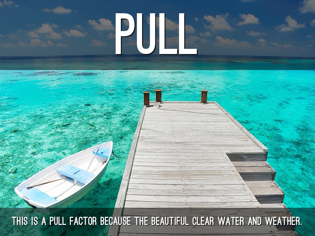 THIS IS A PULL FACTOR BECAUSE THE BEAUTIFUL CLEAR WATER AND WEATHER.