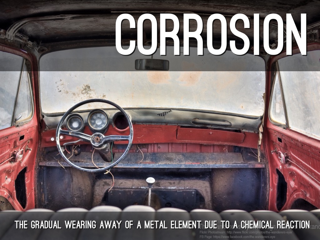 THE GRADUAL WEARING AWAY OF A METAL ELEMENT DUE TO A CHEMICAL REACTION