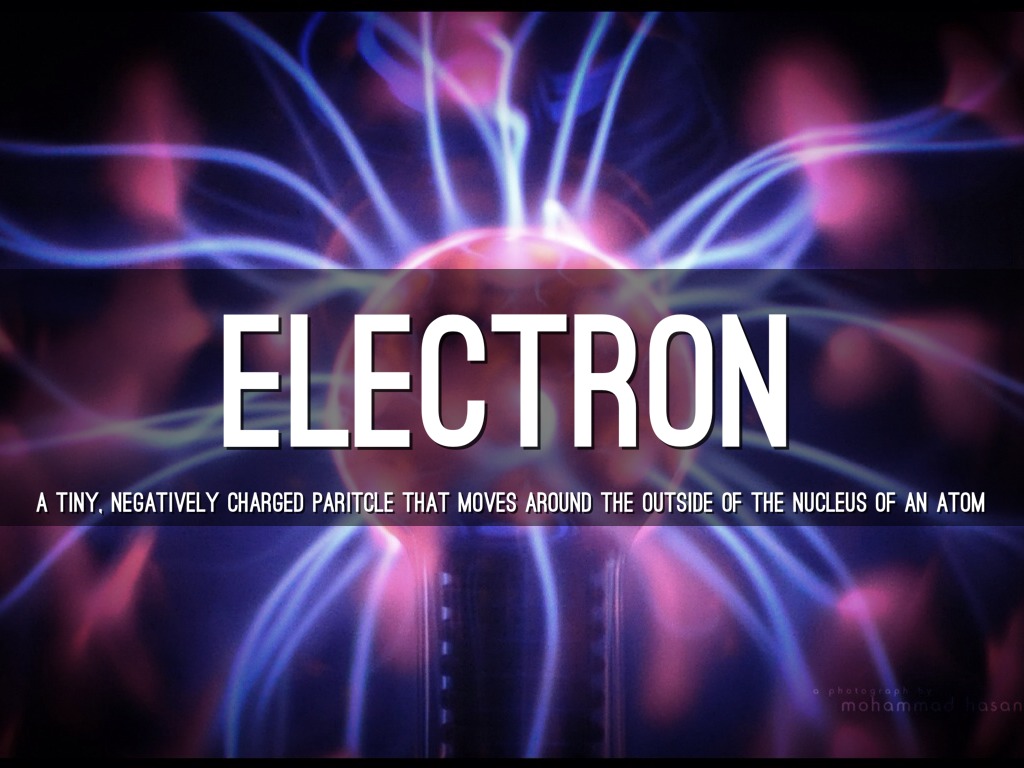 A TINY, NEGATIVELY CHARGED PARITCLE THAT MOVES AROUND THE OUTSIDE OF THE NUCLEUS OF AN ATOM