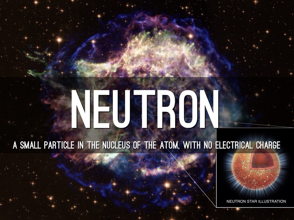 A SMALL PARTICLE IN THE NUCLEUS OF THE ATOM, WITH NO ELECTRICAL CHARGE