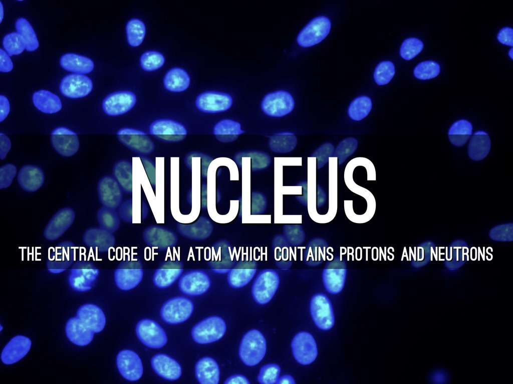 THE CENTRAL CORE OF AN ATOM WHICH CONTAINS PROTONS AND NEUTRONS