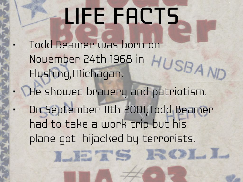 On September 11th 2001,Todd Beamer had to take a work trip but his plane got hijacked by terrorists.