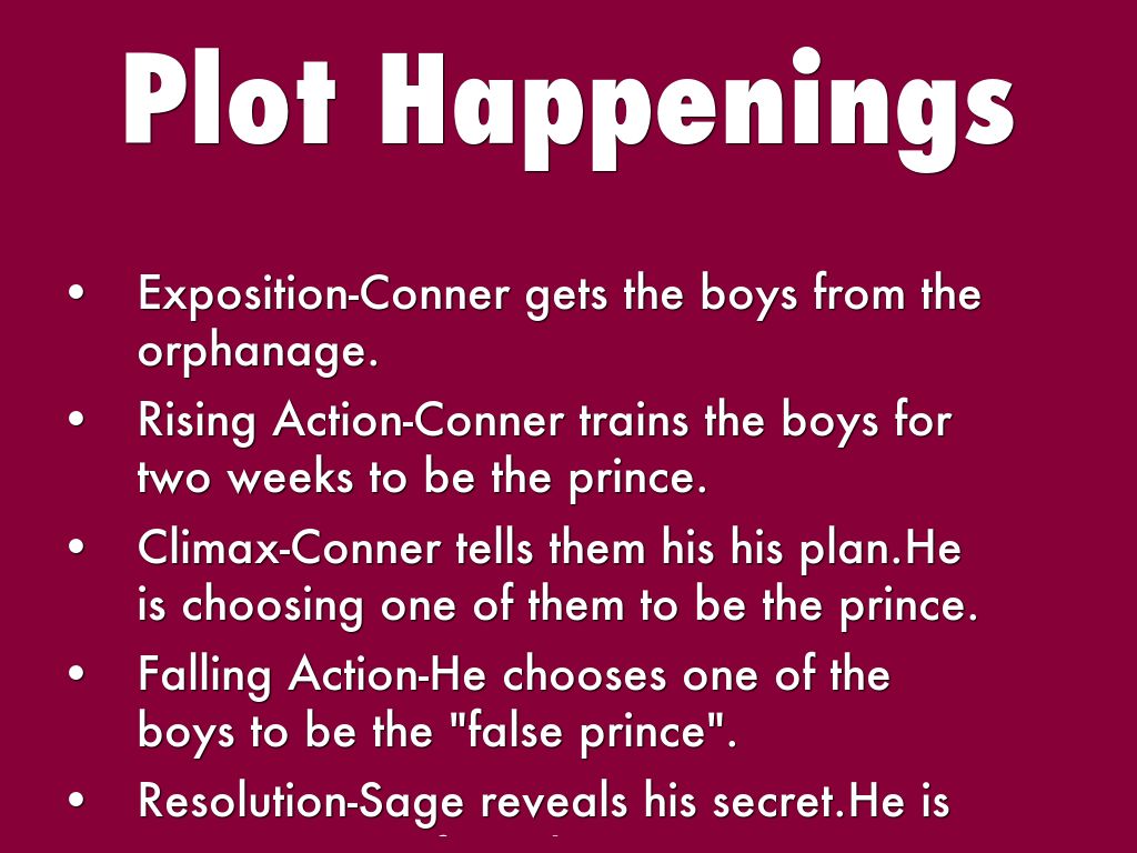 Rising Action-Conner trains the boys for two weeks to be the prince.