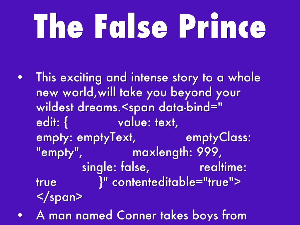 The conflict is resolved by choosing one of the boys to be the "false prince".