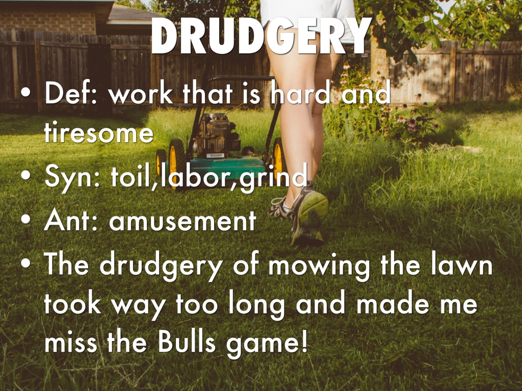 The drudgery of mowing the lawn took way too long and made me miss the Bulls game!