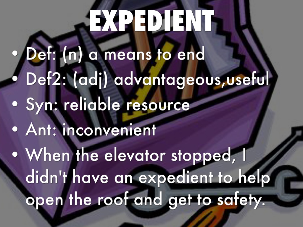 When the elevator stopped, I didn't have an expedient to help open the roof and get to safety.