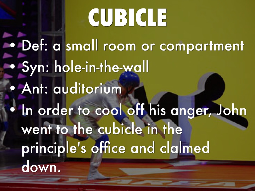 In order to cool off his anger, John went to the cubicle in the principle's office and clalmed down.