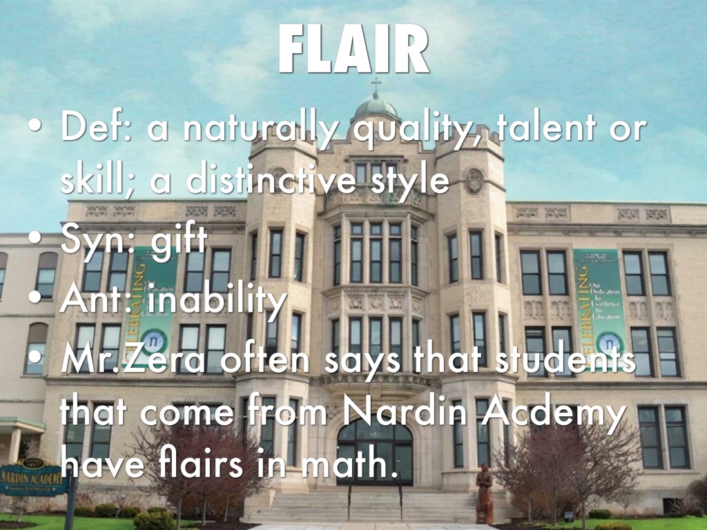 Mr.Zera often says that students that come from Nardin Acdemy have flairs in math.