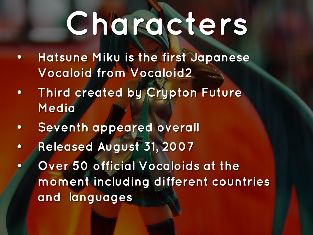 Hatsune Miku is the first Japanese Vocaloid from Vocaloid2