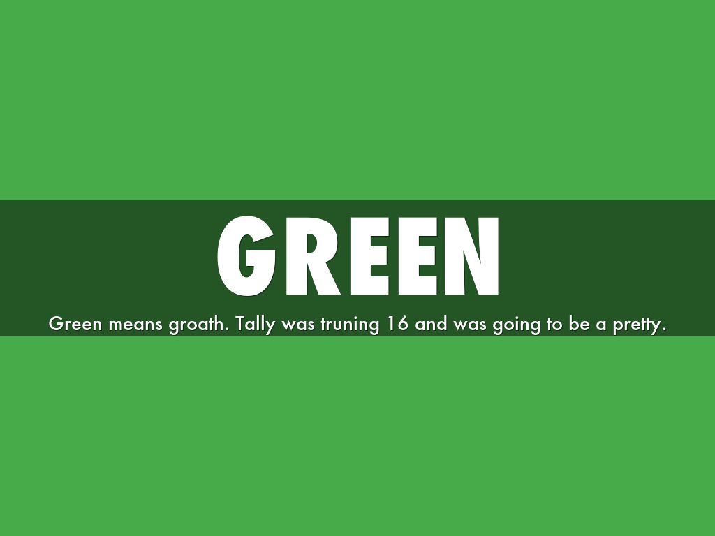 Green means groath. Tally was truning 16 and was going to be a pretty.