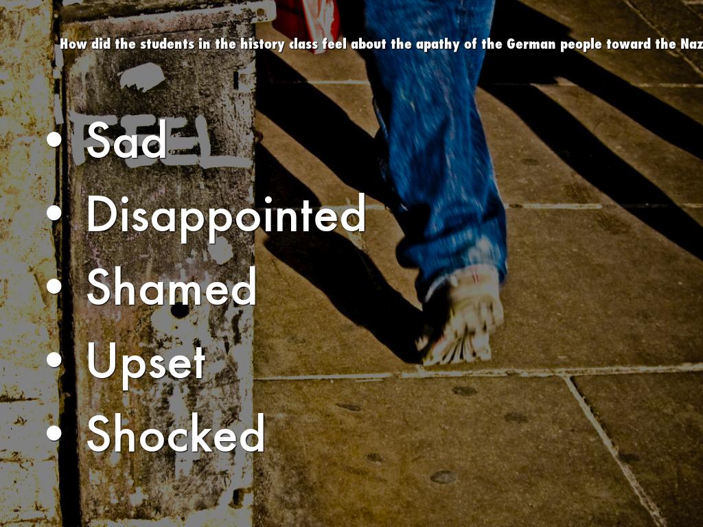 How did the students in the history class feel about the apathy of the German people toward the Nazi atrocities?