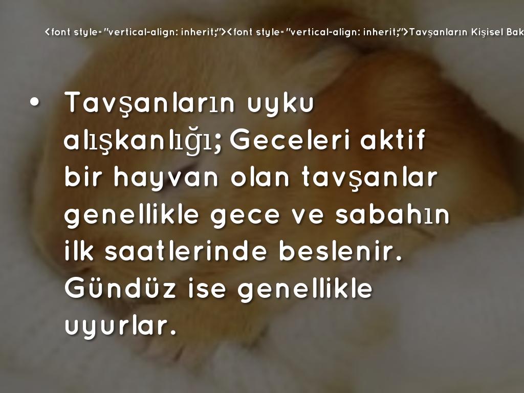 Tavşanların uyku alışkanlığı; Geceleri aktif bir hayvan olan tavşanlar genellikle gece ve sabahın ilk saatlerinde beslenir. Gündüz ise genellikle uyurlar.