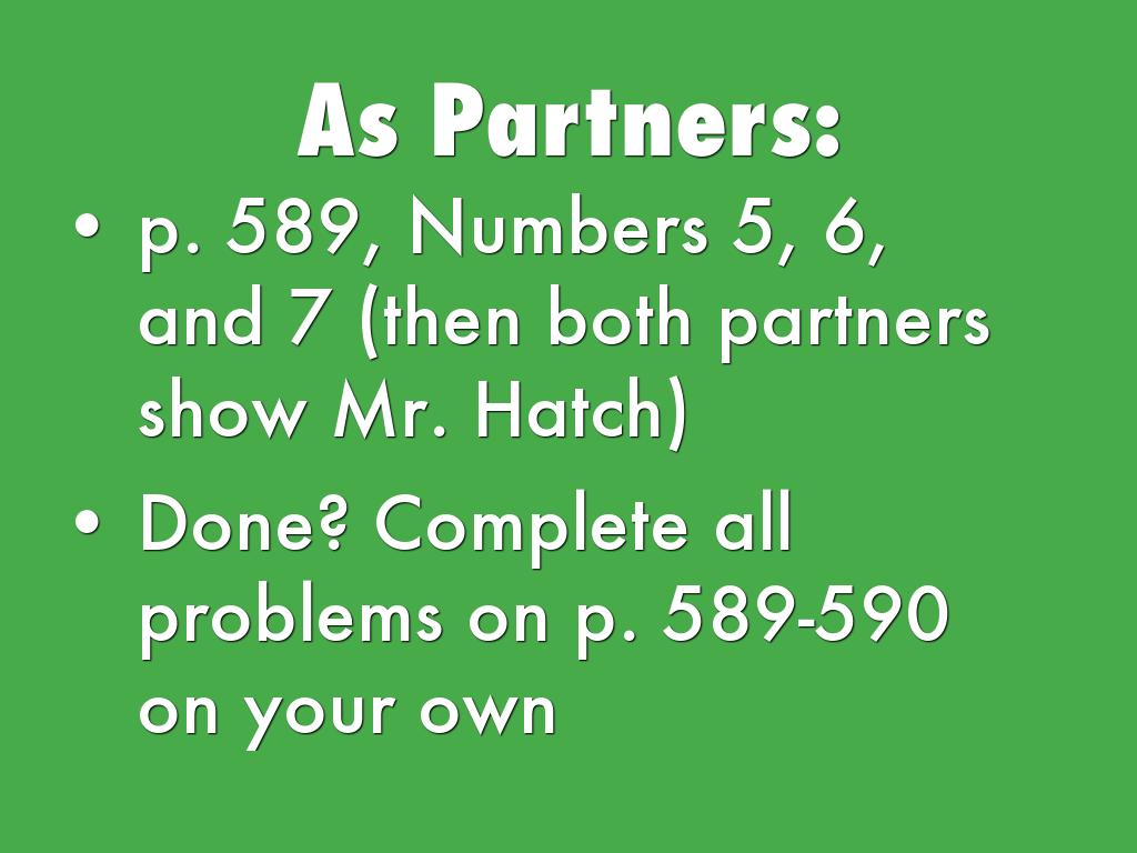 - p. 589, Numbers 5, 6, and 7 (then both partners show Mr. Hatch)