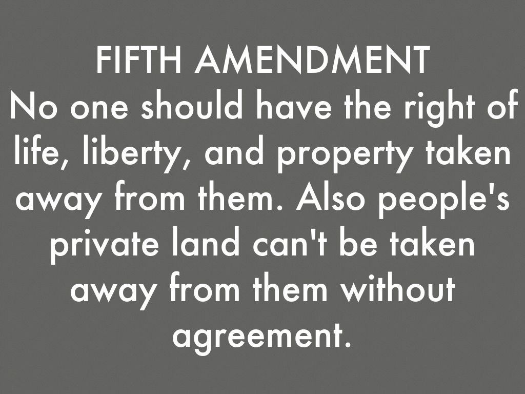 No one should have the right of life, liberty, and property taken away from them. Also people's private land can't be taken away from them without agreement.