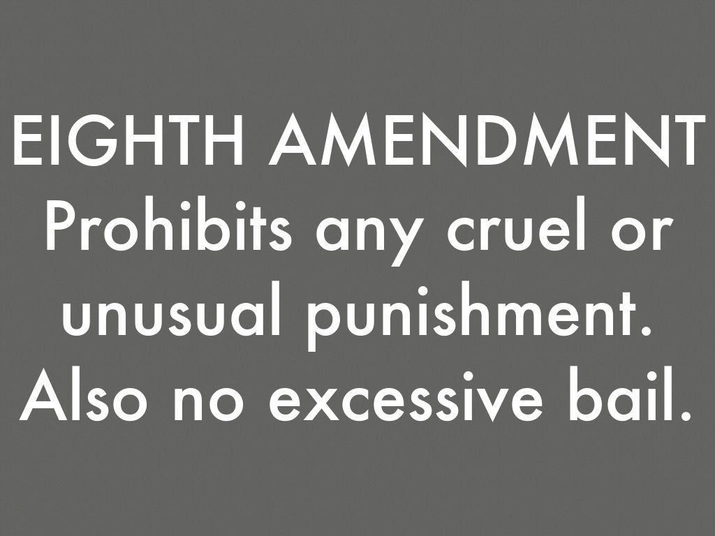Prohibits any cruel or unusual punishment. Also no excessive bail.