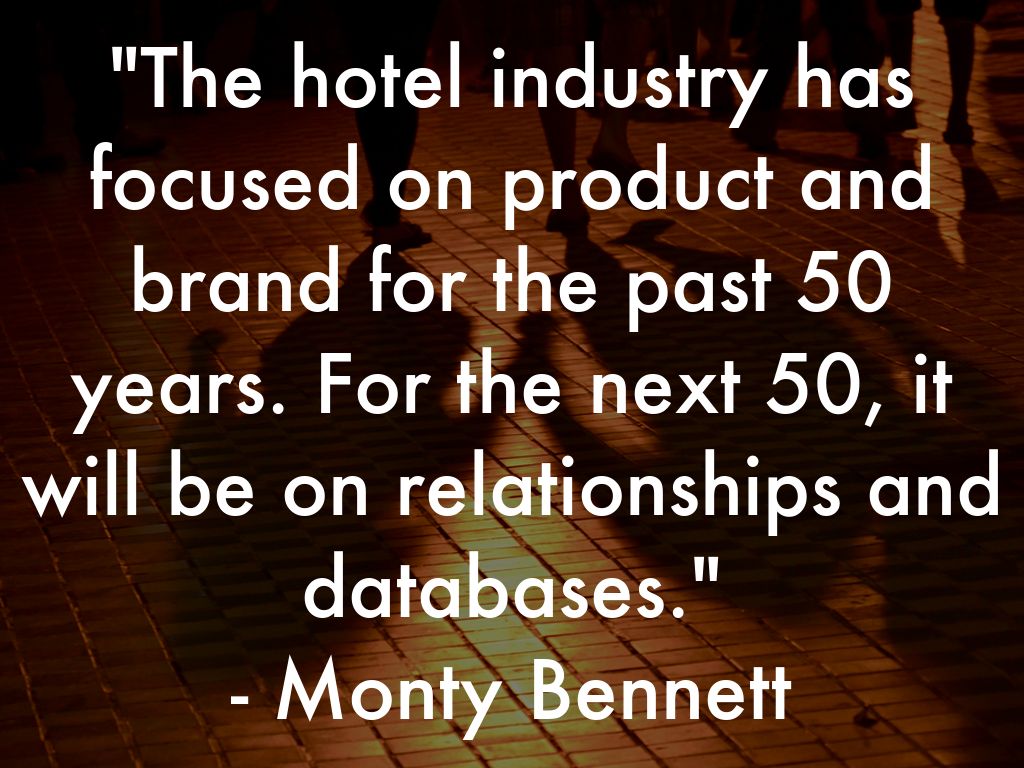 "The hotel industry has focused on product and brand for the past 50 years. For the next 50, it will be on relationships and databases." - Monty Bennett