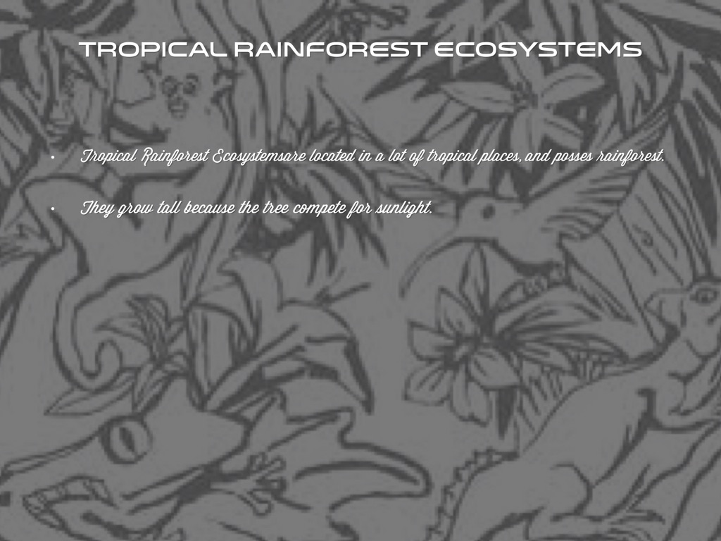 Tropical Rainforest Ecosystemsare located in a lot of tropical places, and posses rainforest.