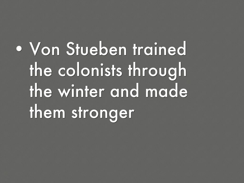 Von Stueben trained the colonists through the winter and made them stronger