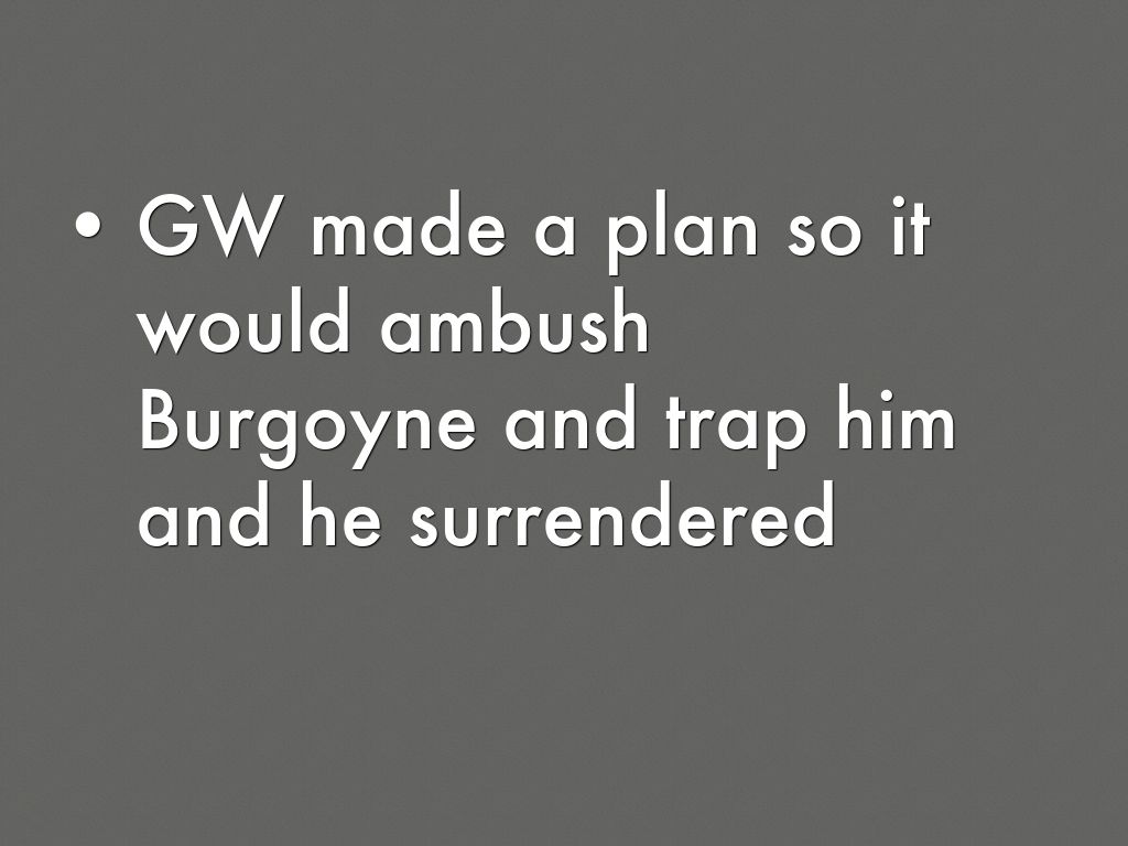 GW made a plan so it would ambush Burgoyne and trap him and he surrendered