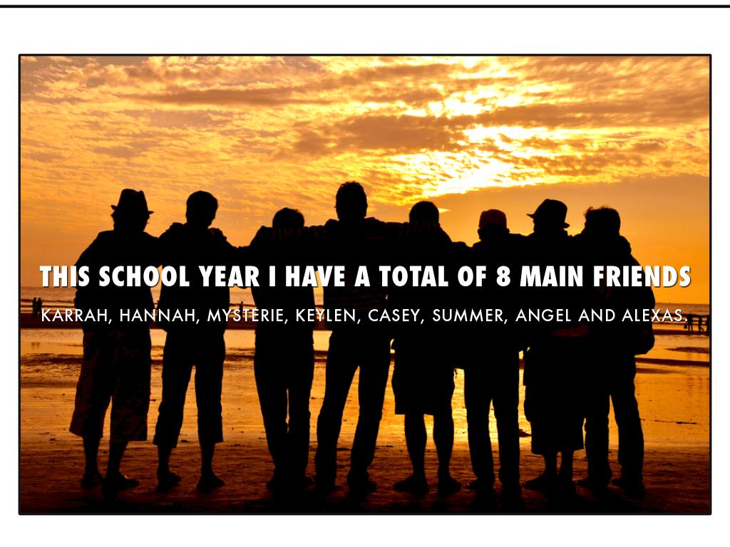 THIS SCHOOL YEAR I HAVE A TOTAL OF 8 MAIN FRIENDS