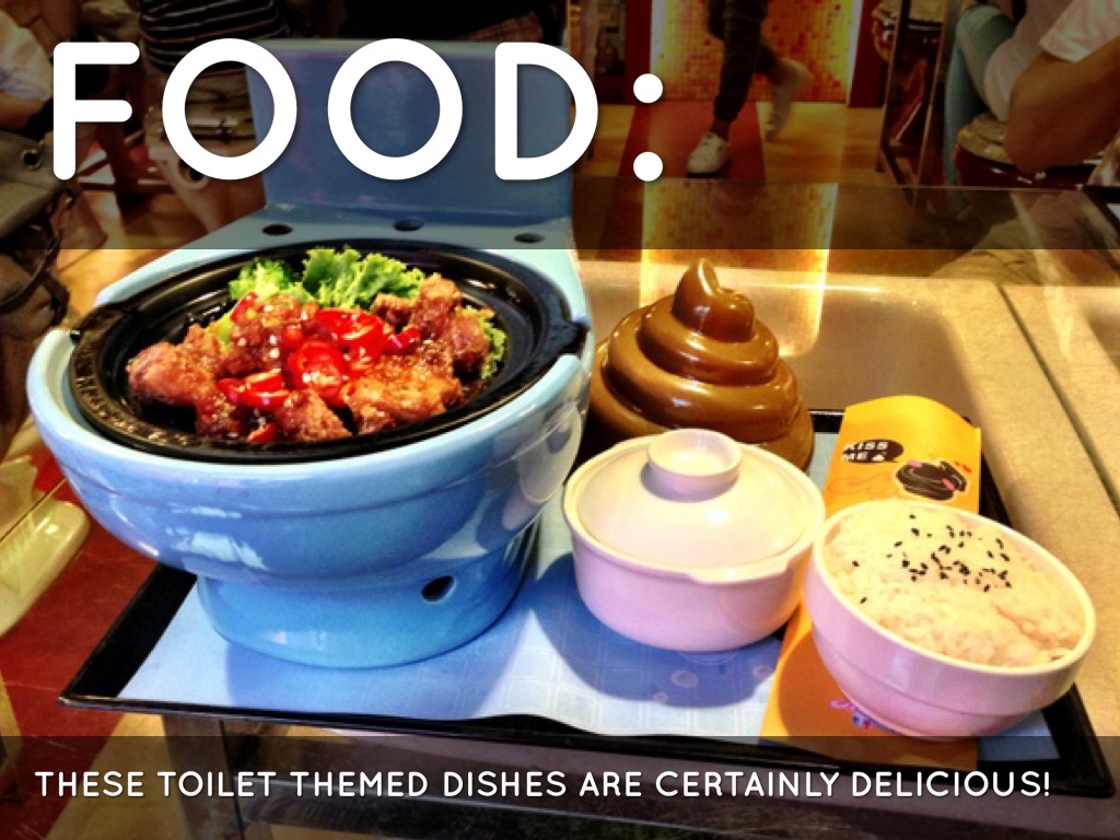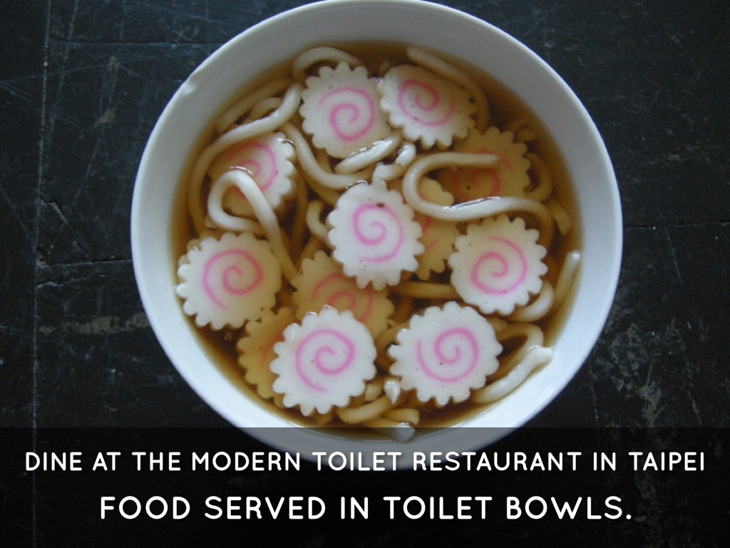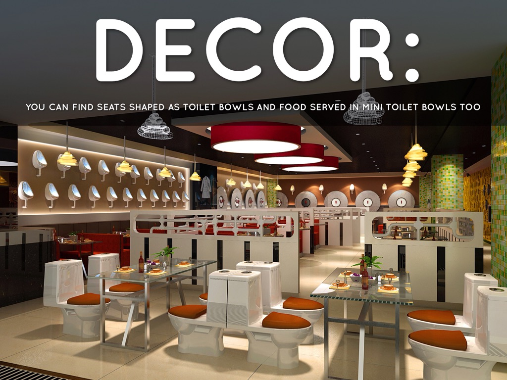 YOU CAN FIND SEATS SHAPED AS TOILET BOWLS AND FOOD SERVED IN MINI TOILET BOWLS TOO