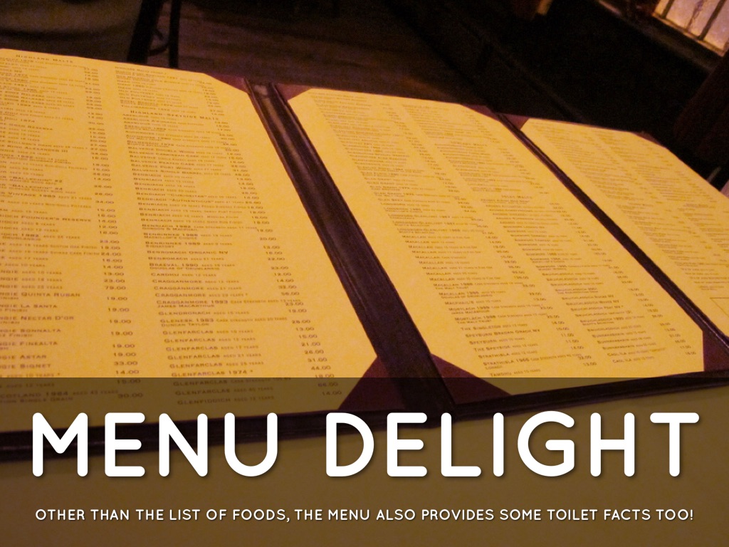OTHER THAN THE LIST OF FOODS, THE MENU ALSO PROVIDES SOME TOILET FACTS TOO!