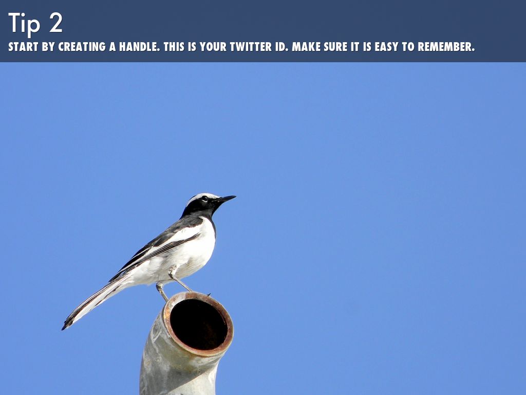 2. Start by creating a handle. This is your Twitter ID. Make sure it is easy to remember. Try to create an account name the sums up you and what you do. For example, @DT_Teacher. Remember, when you send out a tweet, you can only use 140 characters, including any Twitter name. So, keep your handle straightforward, easy to remember, but one that stands out from the crowd, whilst also representing you!