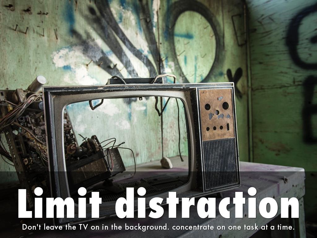 Don't leave the TV on in the background. concentrate on one task at a time.