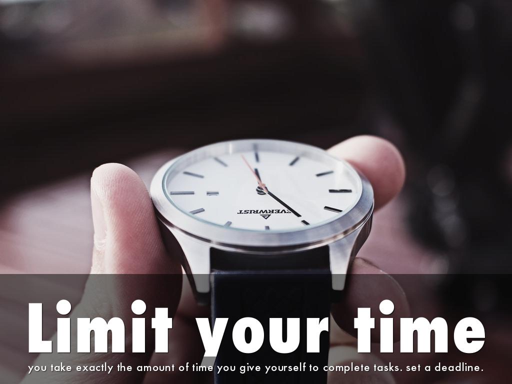 you take exactly the amount of time you give yourself to complete tasks. set a deadline.