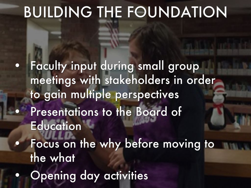 - Faculty input during small group meetings with stakeholders in order to gain multiple perspectives