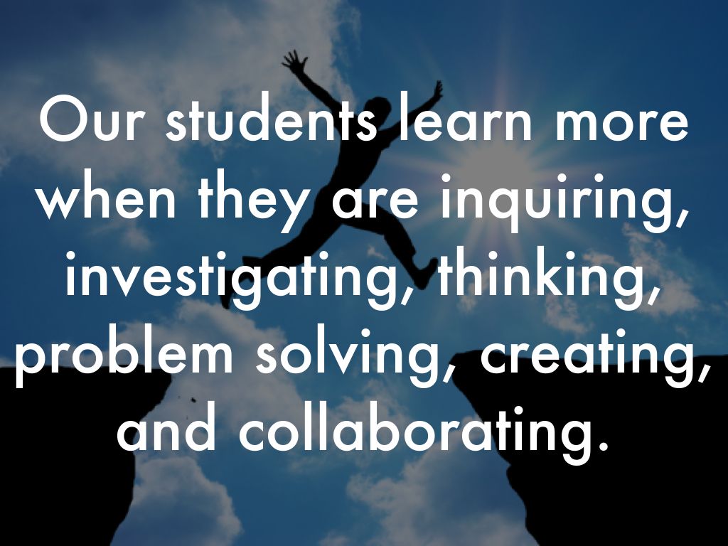 Our students learn more when they are inquiring, investigating, thinking, problem solving, creating, and collaborating.