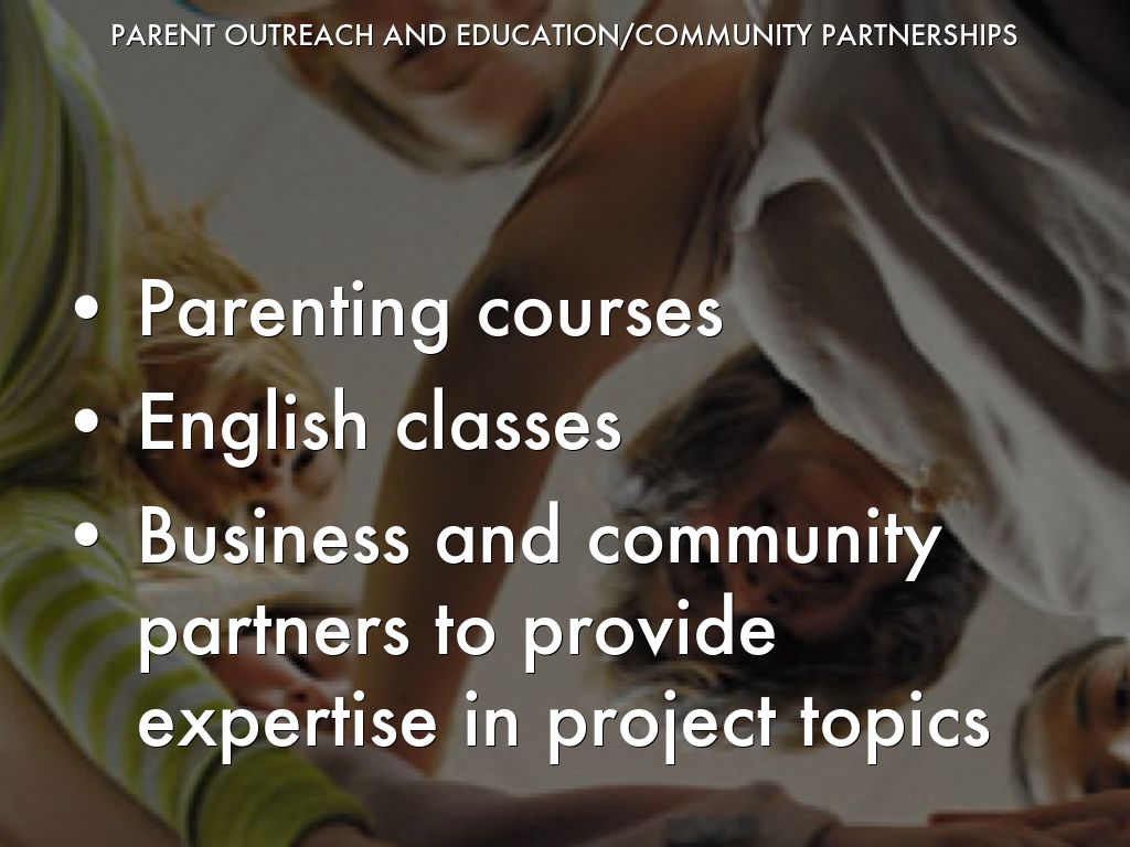 PARENT OUTREACH AND EDUCATION/COMMUNITY PARTNERSHIPS