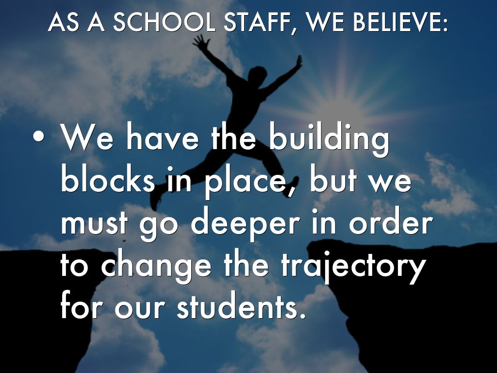 - We have the building blocks in place, but we must go deeper in order to change the trajectory for our students.