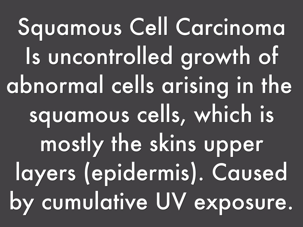 Is uncontrolled growth of abnormal cells arising in the squamous cells, which is mostly the skins upper layers (epidermis). Caused by cumulative UV exposure.