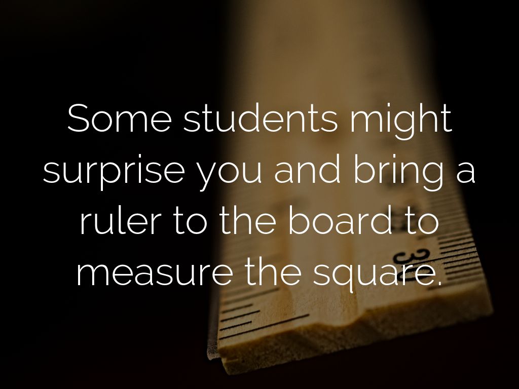 Some students might surprise you and bring a ruler to the board to measure the square.