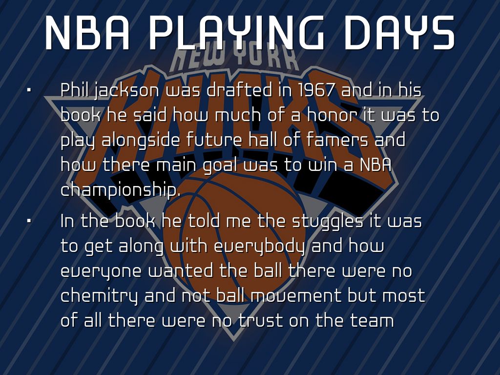 Phil jackson was drafted in 1967 and in his book he said how much of a honor it was to play alongside future hall of famers and how there main goal was to win a NBA championship.