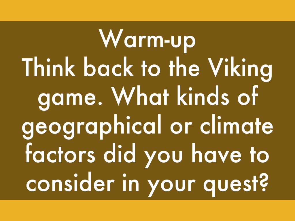 Think back to the Viking game. What kinds of geographical or climate factors did you have to consider in your quest?