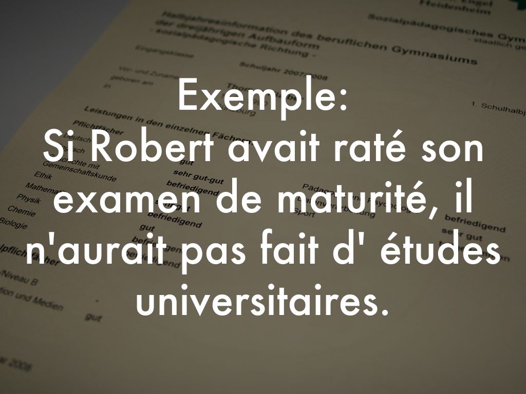 Si Robert avait raté son examen de maturité, il n'aurait pas fait d' études universitaires.