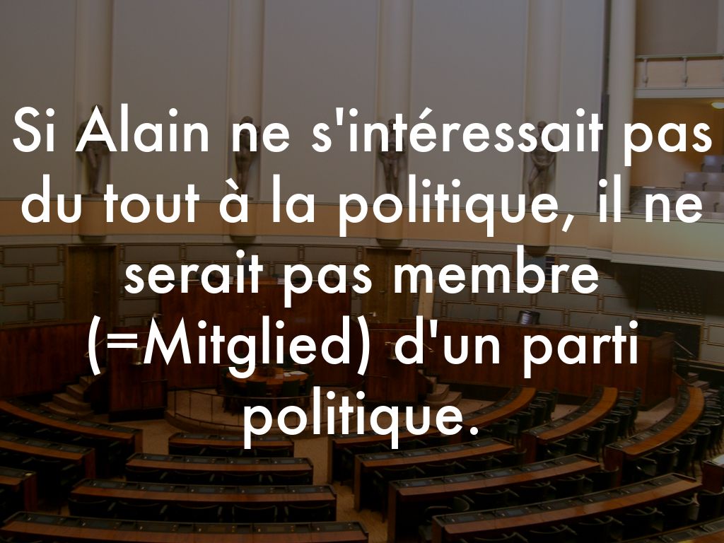 Si Alain ne s'intéressait pas du tout à la politique, il ne serait pas membre (=Mitglied) d'un parti politique.