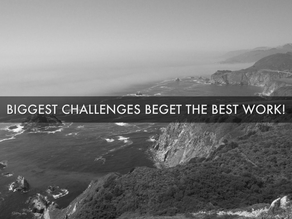 BIGGEST CHALLENGES BEGET THE BEST WORK!