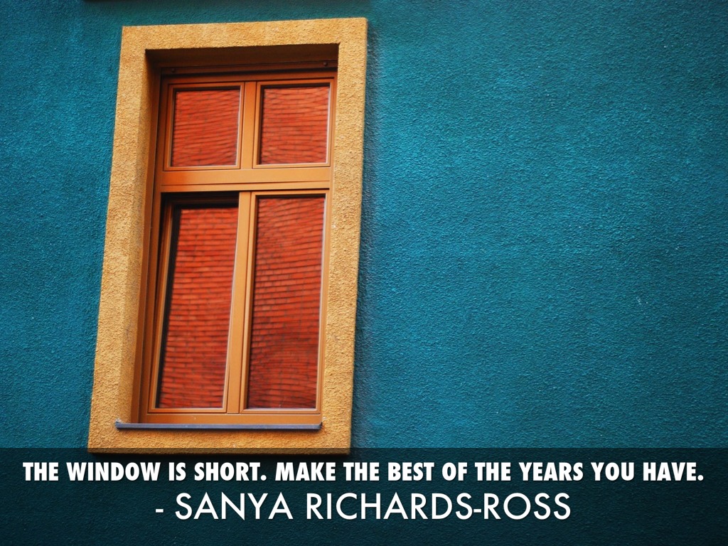THE WINDOW IS SHORT. MAKE THE BEST OF THE YEARS YOU HAVE.