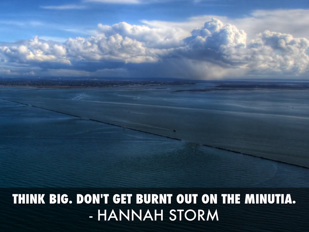 THINK BIG. DON'T GET BURNT OUT ON THE MINUTIA.