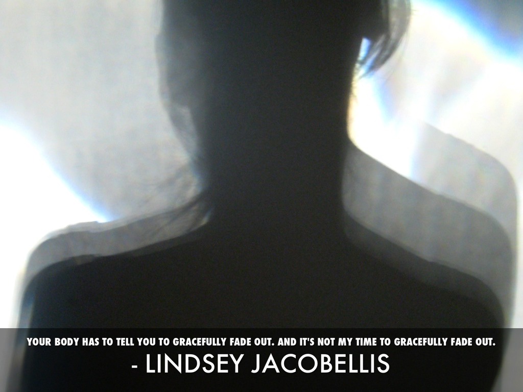 YOUR BODY HAS TO TELL YOU TO GRACEFULLY FADE OUT. AND IT'S NOT MY TIME TO GRACEFULLY FADE OUT.